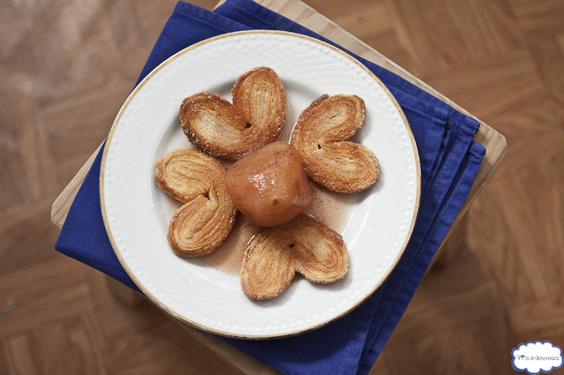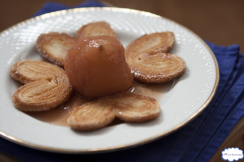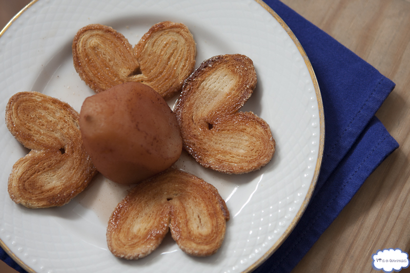 4. Ao servir coloque cada pêra num prato e rodeie de mini palmiers.